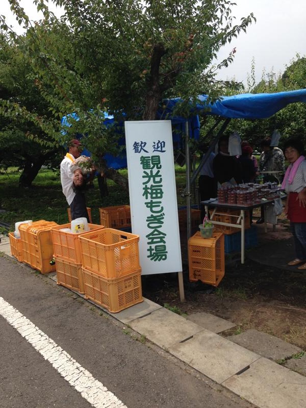 私たちがせっせと梅もぎしている間も、東京や新潟からの観光バスが次から次へと来てました。