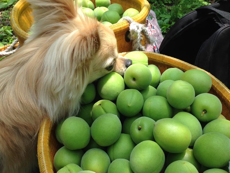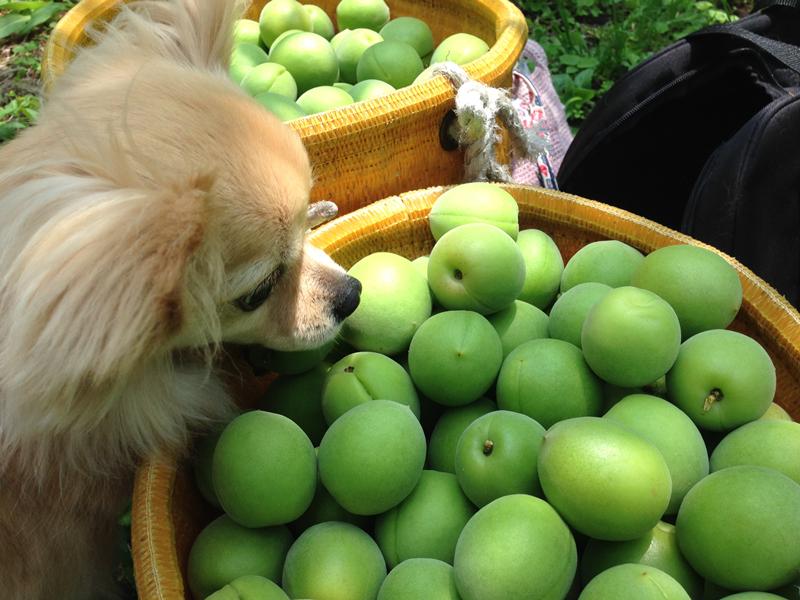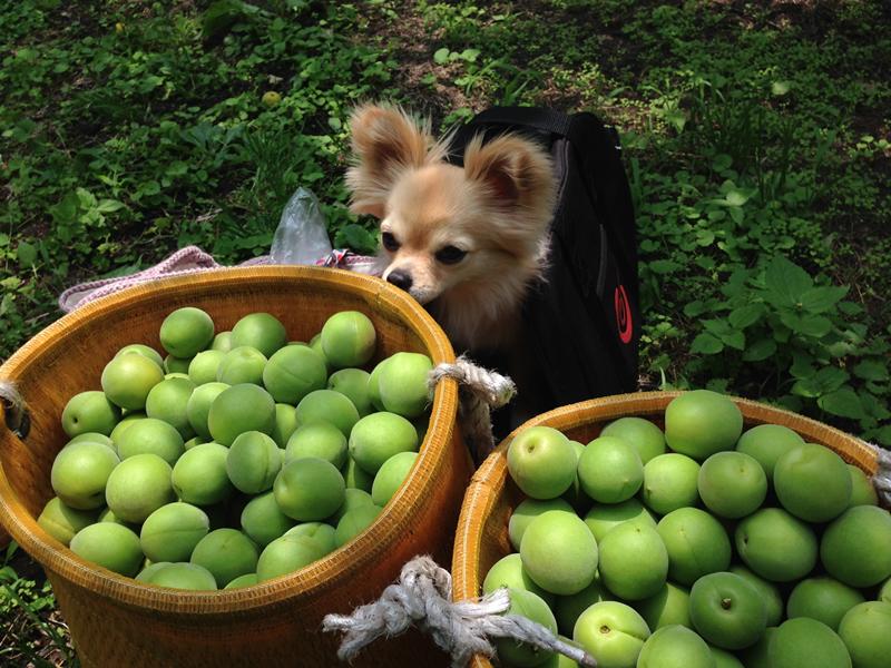 先日の土曜日に家族総出(大人2、犬1)で梅狩りしてきました。